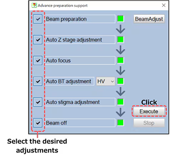 - Auto Z stage adjustment requires the optional 5-axis stage.