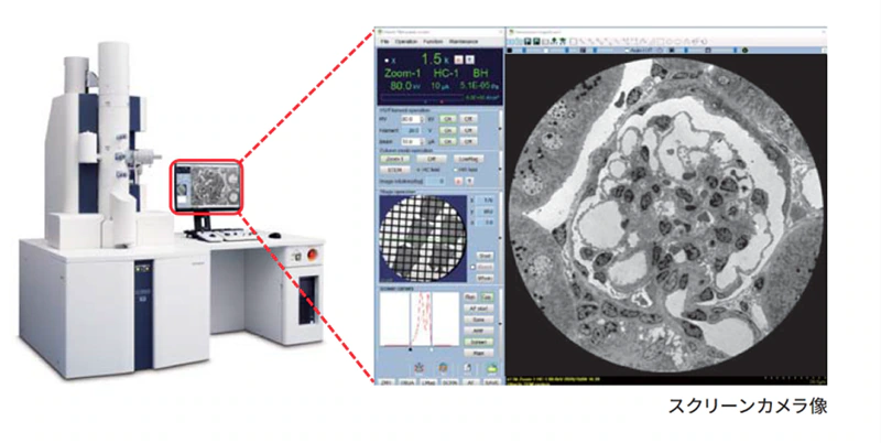 スクリーンカメラによる視野探しから、メインカメラでの像撮影までの⼀連の操作をモニター上に⼀元化し、直感的でスムーズな操作環境を提供します。さらに、装置のデジタル化により、複数拠点間でのリアルタイム画面共有や意⾒交換、遠隔操作*1、教育現場での活用など、リモート環境下でも高いパフォーマンスを発揮します。