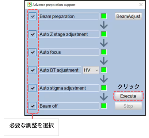 - Auto Z stage adjustmentは、5軸ステージ(オプション)が必要です。