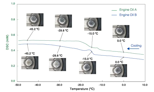 The Real View Sample Observation Unit has a built-in two-megapixel high-resolution camera that supports localized observation within a sample. The viewport (observation window) has a heating mechanism that extends the measurement range from the conventionally observable range of room temperature and above down to the low temperature of -50℃. This enables you to observe processes such as the melting and glass transition of samples at low temperatures, supporting a wide range of measurement needs