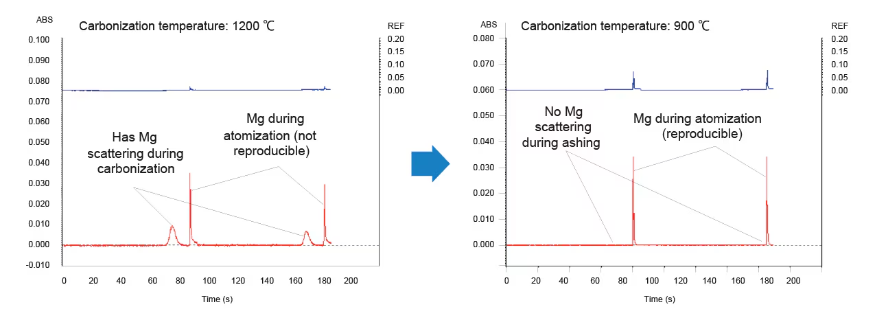 The polarized Zeeman correction method, which uses a permanent magnet, provides a stabilized baseline, suppresses the effects of coexisting materials that have absorption of adjacent wavelengths, and facilitates highly reliable analysis.